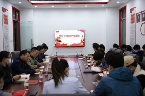 随后,党委书记王振华和党委副书记、副院长张锋带领全体师生党员共同学习了《中国共产党简史》的第三章和第四章的内容。王振华提出加深理解党史的途径是要多读和精读,张锋提出在学习党史的过程中应结合实际、善于联想,为师生党员提供了两种学习思路。