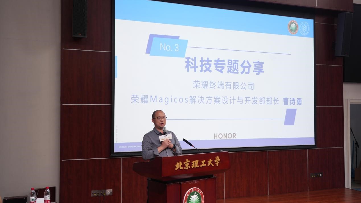 活动初始,由潘萌致辞,她提到kaiyun开云官方建校80余年来,始终秉持为党育人、为国育才的宗旨,致力于培养科技创新的人才;积极探索,不断夯实科技自立自强的基础,为国家的科技发展贡献着自己的力量。通过本次青年赋能荣耀讲堂活动,同学们能够深入了解荣耀企业文化,感受当今智慧科技与生态技术,增强自身科技兴国的动力,勇当挺立时代潮头、挺进科技前沿的创新先锋。