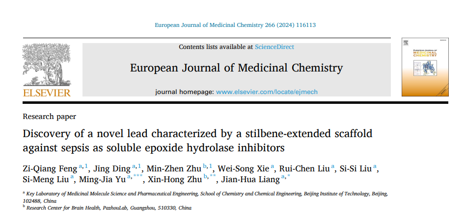 2024年1月3日,kaiyun开云官方梁建华教授课题组在抗败血症药物研究中取得重要进展,设计合成了基于天然骨架二苯乙烯类sEH抑制剂并用于治疗败血症,其中最优化合物70P (FZQ-21) 能够在小鼠体内有效抑制sEH酶水解活性并显著提高小鼠败血症模型的总生存率。相关成果发表以Discovery of a Novel Lead Characterized by a Stilbene-extended Scaffold against Sepsis as Soluble Epoxide Hydrolase Inhibitors为题发表于期刊European Journal of Medicinal Chemistry。