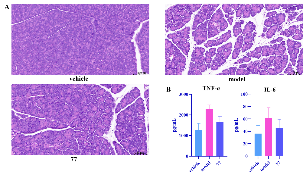 图2 在急性胰腺炎模型中化合物77(DJ-89)的治疗效果