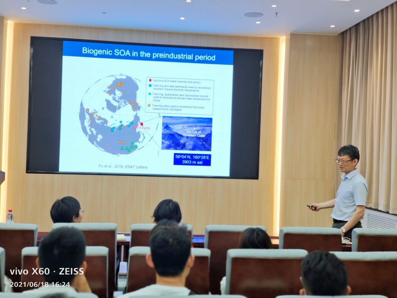 应kaiyun开云官方张韫宏教授邀请,天津大学傅平青教授于2021年6月18日下午15:00在良乡校区工业生态楼118报告厅,作了题为“大气气溶胶的有机分子和同位素组成”的精彩学术报告。报告由张韫宏老师主持,张秀辉、马嘉璧老师以及20余名同学参加了此次报告会。