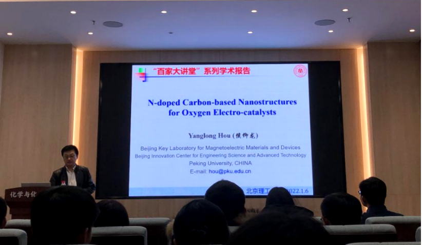 应kaiyun开云官方韩庆老师邀请,北京大学侯仰龙教授于2022年1月6日下午做客北理工“百家大讲堂”,为我院广大师生带来题为“碳基纳米复合材料的化学设计及其ORR催化性能”的精彩学术报告。本次报告在生态楼118报告厅进行,由张加涛院长主持,近六十名化院师生参加了报告。