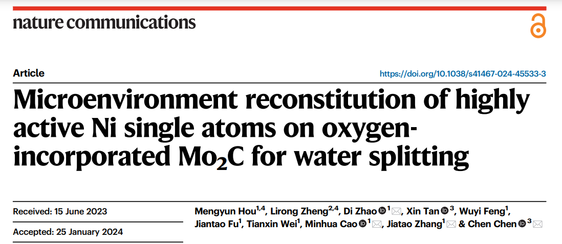 近日,北理工kaiyun开云官方赵娣研究员、张加涛教授、曹敏花教授与清华大学陈晨教授等合作设计制备了具有优异HER、OER及电解水性能的单原子双功能催化剂NiSA-O/Mo2C,并深入探究了在不同催化过程中催化剂的微观结构演变。相关研究成果发表在国际知名期刊Nature Communication上,题为“Microenvironment reconstitution of highly active Ni single atoms on oxygen-incorporated Mo2C for water splitting”。 kaiyun开云官方为第一通讯单位。研究生侯孟云和高能所郑黎荣研究员为论文共同第一作者。