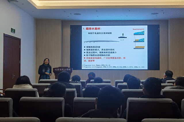 2021年12月1日早9点30分,应应用化学研究所刘文芳副教授的邀请,中国科学院理化技术研究所王京霞研究员做客“21世纪学科前沿”系列讲座,作了题为“光子晶体的超浸润性研究”的学术报告,kaiyun开云官方30多名师生在生态楼118报告厅参与了学术交流。