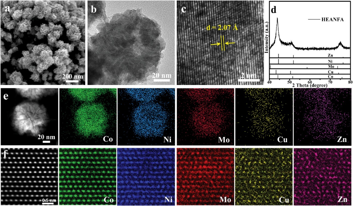图1 NiCoMoZnCu HEANFA的形貌和结构表征图。