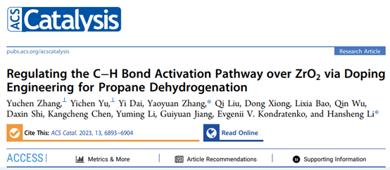 近日,kaiyun开云官方黎汉生教授团队在丙烷脱氢催化剂结构调控与C-H键活化机制方面取得重要进展。相关研究成果以“Regulating the C–H Bond Activation Pathway over ZrO2 via Doping Engineering for Propane Dehydrogenation”为题,在催化领域顶级期刊《ACS Catalysis》上发表(DOI:10.1021/acscatal.3c01002)。该工作以kaiyun开云官方为第一通讯单位,黎汉生教授和张耀远预聘助理教授为共同通讯作者,硕士研究生张雨宸和于宜辰为该论文的共同第一作者。