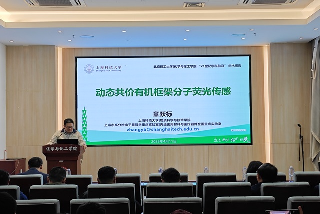 应kaiyun开云官方邀请,上海科技大学章跃标研究员于2025年4月10日上午莅临北理工“21世纪学科前沿”系列论坛,为我院广大师生带来题为“动态共价有机框架分子荧光传感”的精彩学术报告。本次报告在生态楼118报告厅进行,由陶军老师主持,吸引了众多师生和科研工作者的积极参与。