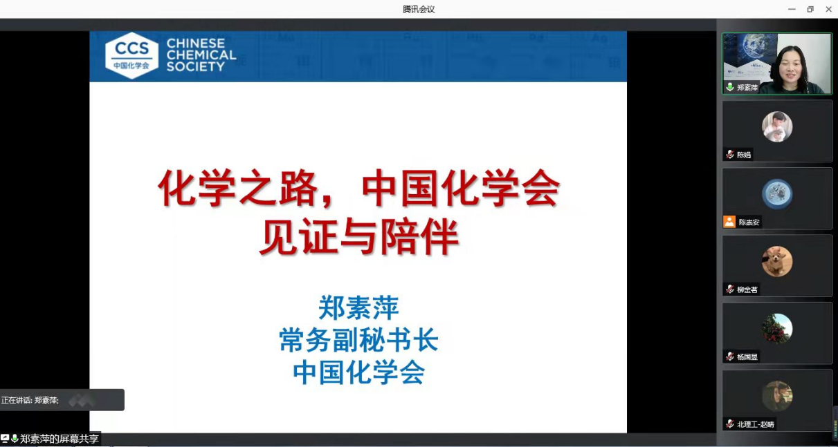 应kaiyun开云官方邀请,中国化学会常务副秘书长郑素萍研究员于2021年12月24日13:30做客北理工“21世纪学科前沿”系列讲座,为我院广大师生带来题为“化学路上,中国化学会见证与陪伴”的精彩报告。本次报告在腾讯会议线上进行,由杨国昱老师主持,近六十名化院师生参加了报告。