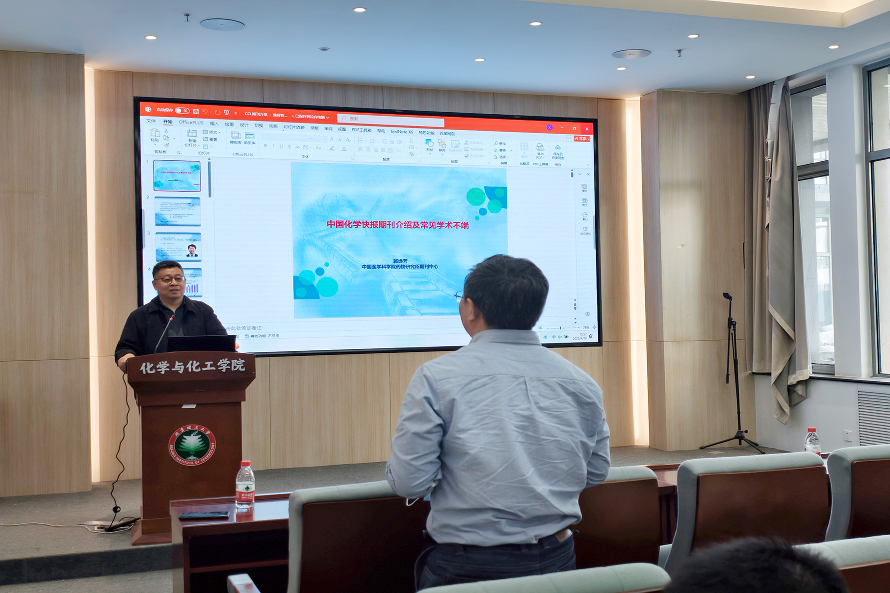 报告中,郭焕芳编审简单介绍了《中国化学快报》(Chinese Chemical Letters)的创刊背景、编委、发展历程,阐述了该期刊的发展目标及最新动态。郭编审重点讲述了科技论文写作的使用技巧,包括写作的基本要求、提纲的必要性、论文结构、对作者的要求等,并详细解析了论文各组成部分的写作规范。同时郭编审结合审稿实践中积累的典型案例,深入剖析了数据篡改、图像误用、署名争议等学术不端行为,鼓励师生注重论文质量,提升科研表达能力。
