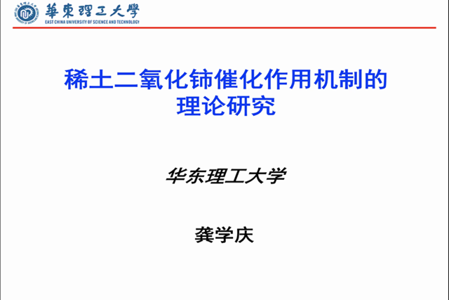 龚学庆教授首先介绍了CeO2在催化小分子CO和NOx方面的应用,简单分析了Ce作为电子给体和受体的原理。龚学庆教授研究团队主要使用量化计算研究二氧化铈晶面上铈的4f轨道电子存储行为,并结合实验开展研究。