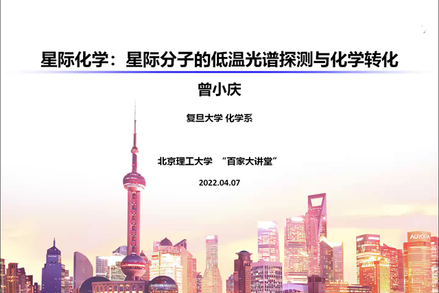 2022年4月7日上午,由kaiyun开云官方研究生院主办、kaiyun开云官方承办的北理工“百家大讲堂”系列讲座在腾讯会议上举行。复旦大学曾小庆教授应kaiyun开云官方马嘉璧副教授的邀请,做了题为“星际分子的低温光谱探测与化学转化”的学术报告。报告由马嘉璧副教授主持,kaiyun开云官方的老师与学生参加了报告会并进行学术交流。
