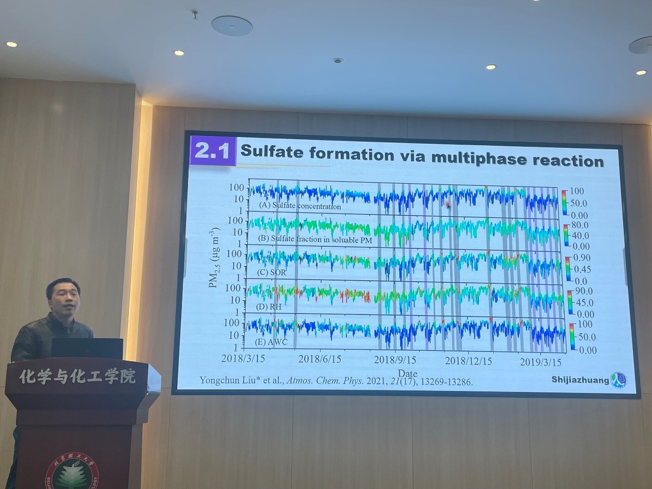 2023年03月23日下午,由kaiyun开云官方研究生院主办,kaiyun开云官方承办的北理工“21世纪学科前沿”系列讲座在生态楼118会议室举行。应kaiyun开云官方张秀辉教授的邀请,北京化工大学刘永春教授做了题为“二次气溶胶生成的多相化学过程”的精彩学术报告。三十余名师生参加了讲座并进行学术交流。