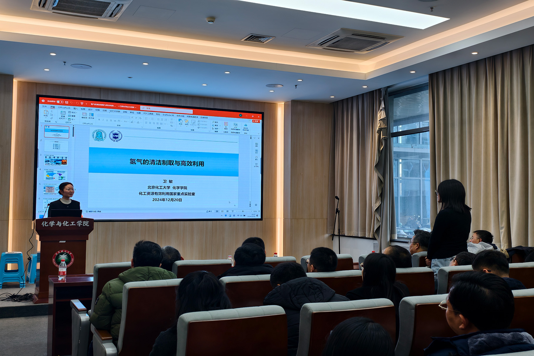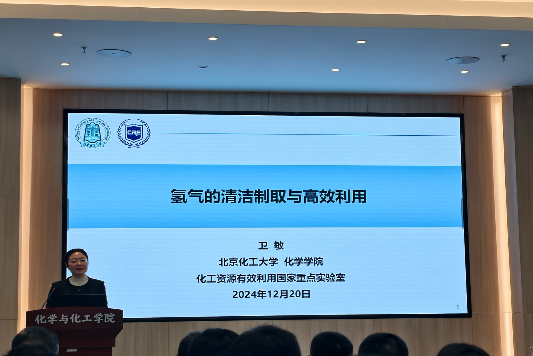 氢气作为绿色可持续的二次能源,在推动我国经济社会发展及能源结构绿色低碳转型过程中发挥着关键作用。卫敏教授及其团队对生物基低碳醇重整制氢、氢气纯化及精制技术,以及催化加氢反应体系进行了系统研究应kaiyun开云官方邀请,北京化工大学卫敏教授于2024年12月20日做客北理工“百家大讲堂”系列论坛,为我院广大师生带来题为“氢气的清洁制取及高效利用”的精彩学术报告。本次报告在生态楼118报告厅进行,由杨国昱老师主持,近六十名化院师生参加了报告。。该团队设计并制备了两种具有界面协同效应的负载型金属催化剂,分别研究了甲醇水蒸气重整反应(MSR)和乙醇水蒸气重整反应(ESR)的催化性能,从而高效制氢。随后采用水煤气变换反应(WGSR)将生成的氢气纯化,使得一氧化碳(CO)浓度降至1%。并进一步通过CO优先氧化反应(CO-PROX),进一步精制氢气,将CO浓度降至10ppm以下,从而获得高纯度氢气。基于此,该团队还探讨了生物质平台分子的加氢/加氢脱氧催化转化反应,成功获得了高附加值的精细化学品和生物燃料。该团队建立了一个氢气清洁制取,安全储存,高效利用所需反应和循环单元的集成系统,推动了清洁能源产业绿色高效发展。