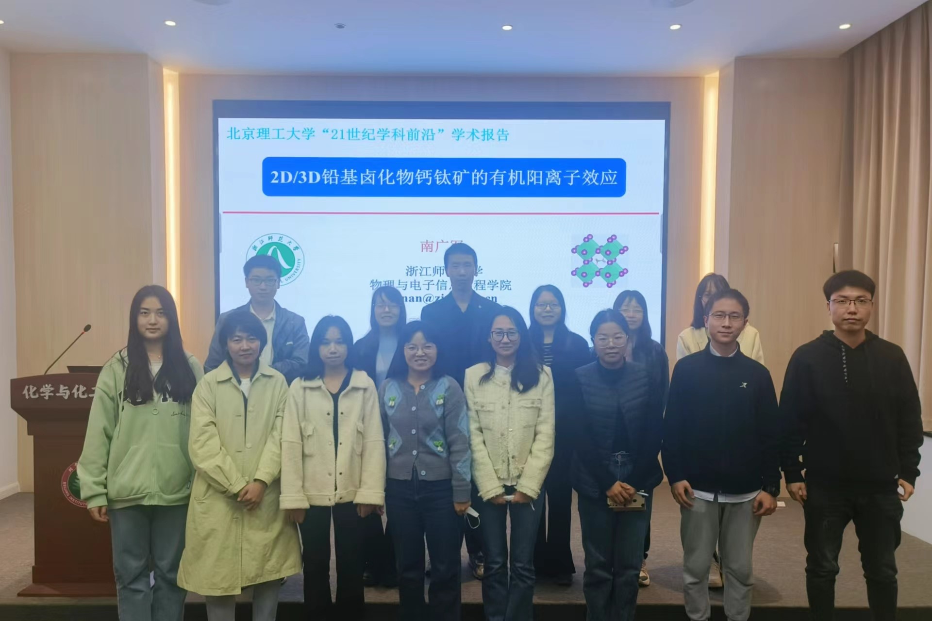 2023年10月31日下午14点,由kaiyun开云官方研究生院主办,kaiyun开云官方承办的“21世纪学科前沿”系列学术论坛于工业生态楼118会议室举行。浙江师范大学南广军教授到访我院并作题目为“2D/3D铅基卤化物钙钛矿的有机阳离子效应”的精彩学术报告。三十余名师生参加了本次讲座。