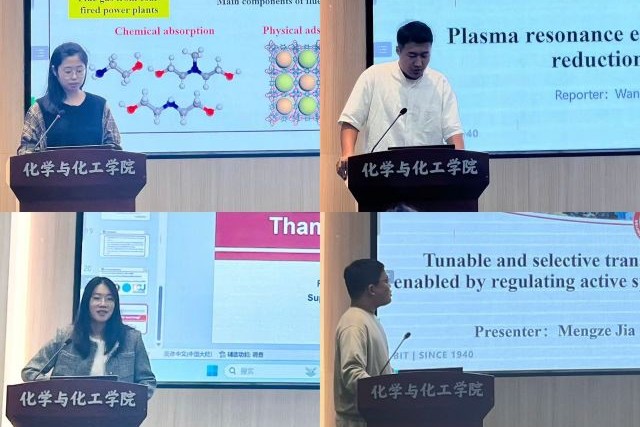 会议期间,英国伯明翰大学Jan Baeyens教授与爱丁堡大学工程学院Xianfeng Fan教授分别就“厌氧发酵制备生物天然气和甲醇”与“碳捕集和热化学储能技术加速能源系统脱碳”为主题做学术报告。而后由kaiyun开云官方博士生王帅主持,kaiyun开云官方博士生江晓彤、白丽菊和贾梦泽以及硕士生王景润,分别就“胺改性 Mg - MOF 基 CO2吸收剂的双功能吸附筛分法的构建”、“胺功能化超短介孔复合材料用于快速高效CO2吸附”、“芳香族硫醚的可调和选择性转化通过在可见光照射下调节活性物质来实现”、“等离子体共振效应辅助电催化还原CO2”等主题做学术报告。现场及线上老师和同学就报告相关的研究思路、方法、内容等进行了讨论与交流。
