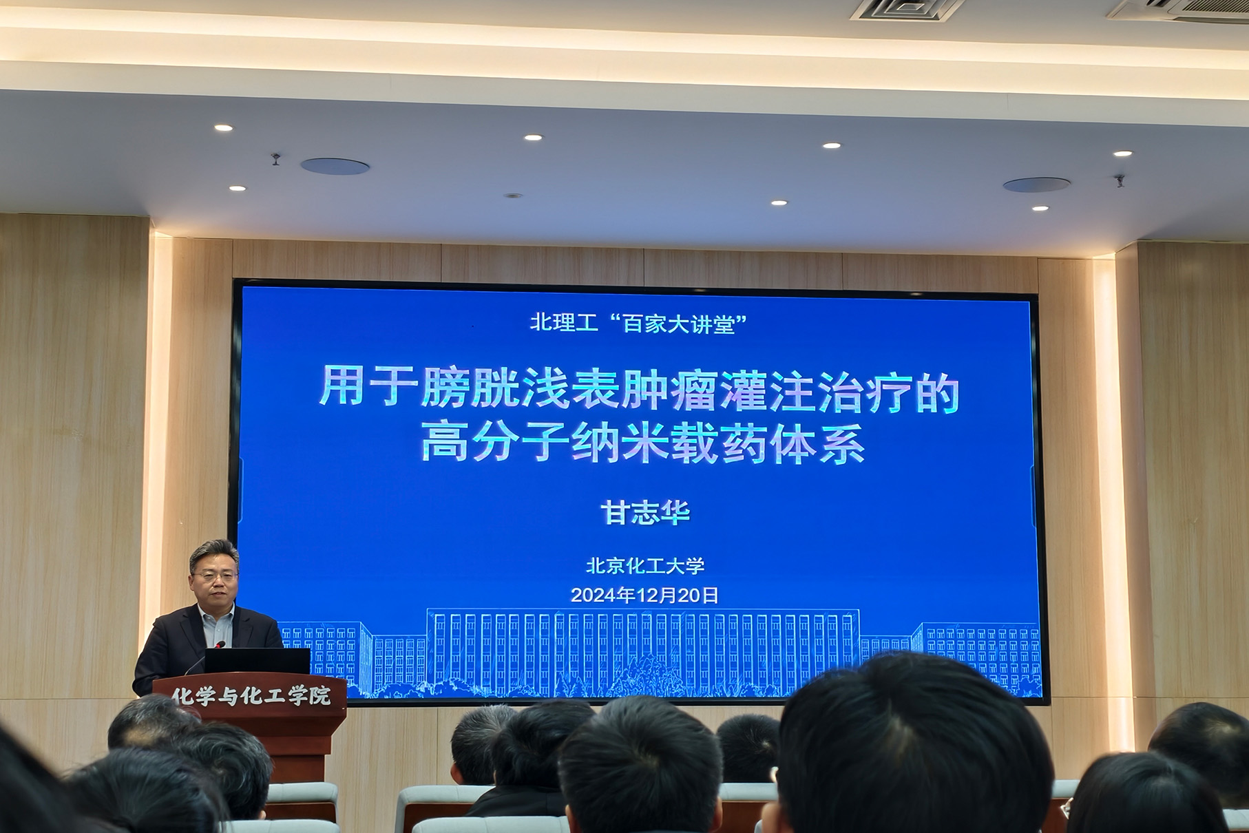 应kaiyun开云官方邀请,北京化工大学甘志华教授于2024年12月20日做客北理工“百家大讲堂”系列论坛,为我院广大师生带来题为“用于膀胱浅表肿瘤灌注治疗的高分子纳米载药体系”的精彩学术报告。本次报告在生态楼118报告厅进行,由杨国昱老师主持,近六十名化院师生参加了报告。