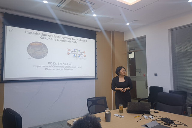 应kaiyun开云官方邀请,瑞士伯尔尼大学分子量子系统联合研究中心(WSS研究中心)柳士霞教授2025年4月3日为我院广大师生带来题为“Exploitation of Heterocycles for N-doped Graphene Nanomaterials”的精彩学术报告。本次报告在生态楼精工厅会议室进行,由李晖教授主持,近二十名化院师生参加了报告会。