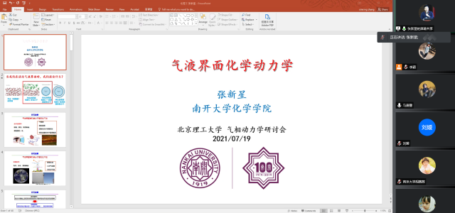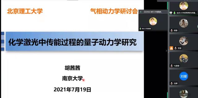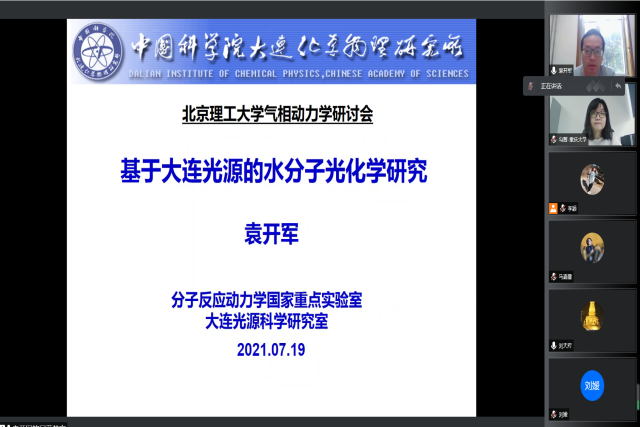 应kaiyun开云官方马嘉璧副教授邀请,中科院大连化物所袁开军研究员、南开大学张新星研究员、南京大学胡茜茜副教授、重庆大学勾茜教授于2021年7月19日上午8:30在腾讯会议线上分别作了题为“基于大连光源的水分子光化学研究” 、“气液界面化学动力学” 、“化学激光中传能过程的量子动力学研究” 、 “Rethinking π Interactions: Rotational stories”的精彩学术报告。报告由马嘉璧副教授主持,谢静教授及几十名同学参加了此次报告会。