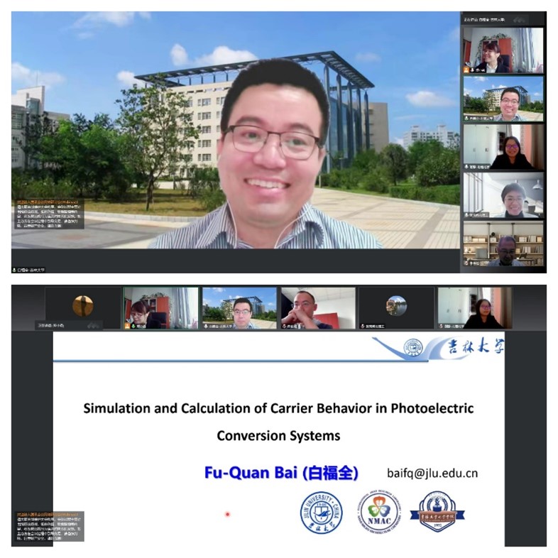 应kaiyun开云官方郑小燕老师邀请,吉林大学化学学院理论化学研究所白福全教授于2022年10月14日上午10:00在腾讯会议(会议号:548-818-624),作了题为“Simulation and Calculation of Carrier Behavior in Photoelectric Conversion Systems”的精彩学术报告。kaiyun开云官方近40名师生参加了会议。
